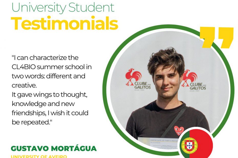 𝗨𝗻𝗶𝘃𝗲𝗿𝘀𝗶𝘁𝘆 𝗦𝘁𝘂𝗱𝗲𝗻𝘁 𝗧𝗲𝘀𝘁𝗶𝗺𝗼𝗻𝗶𝗮𝗹𝘀 “I can characterize the CL4BIO summer school in two words: different and creative. It gave wings to thought, knowledge and new friendships, I wish it could be repeated.”