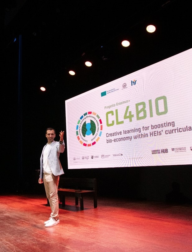 On October 15, the centenary anniversary of the birth of Italo Calvino, one of the most beloved writers in Italy, whose fame continues to gain recognition among international readers, was inaugurated. Through a series of events, there was a desire to creatively reflect on this genius and innovator of Italian literature, with a particular focus on environmental sustainability themes that can be found in many of his works. In conjunction with the 23rd edition (October 16-22, 2023) with the theme “Italian language and Sustainability,” Dr. Danilo Audiello from the CL4BIO UniFg project team, who is also a renowned scientific communicator and artist on the international stage, presented the Erasmus Plus CL4BIO project.